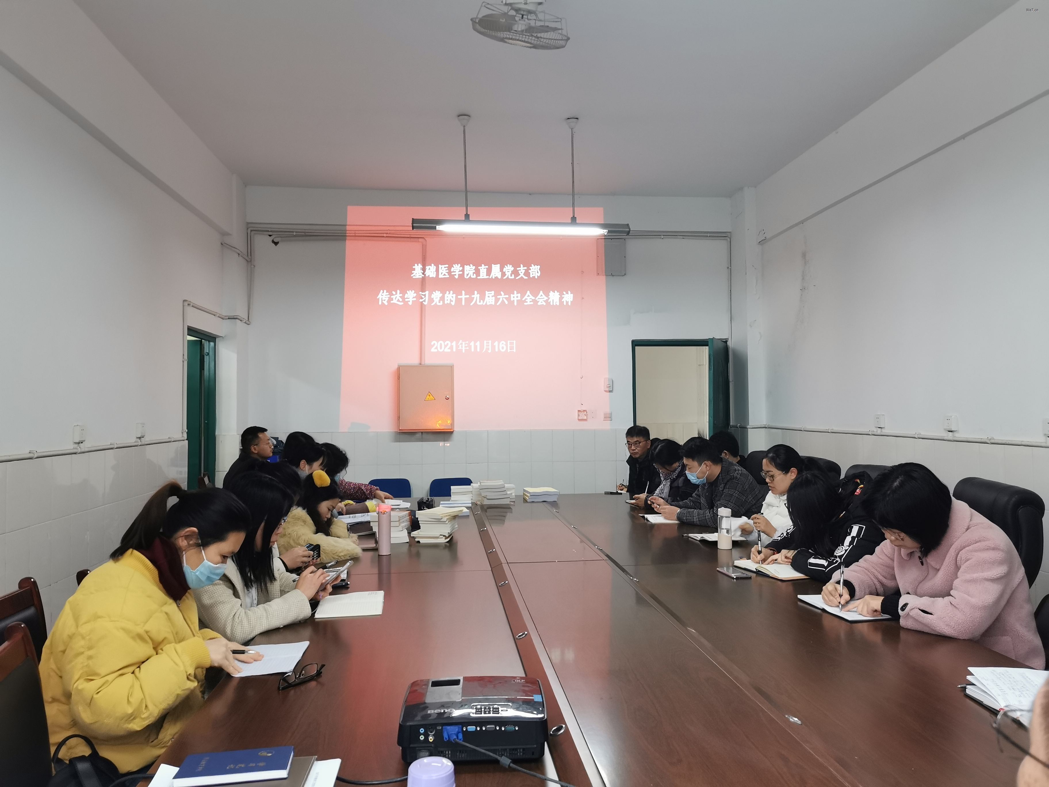 11月16午,304永利集团直属党支部在青年路D2-6室召开全体教职工会议,集中传达学习党的十九届六中全会精神。支部书记孙玉锦主持会议