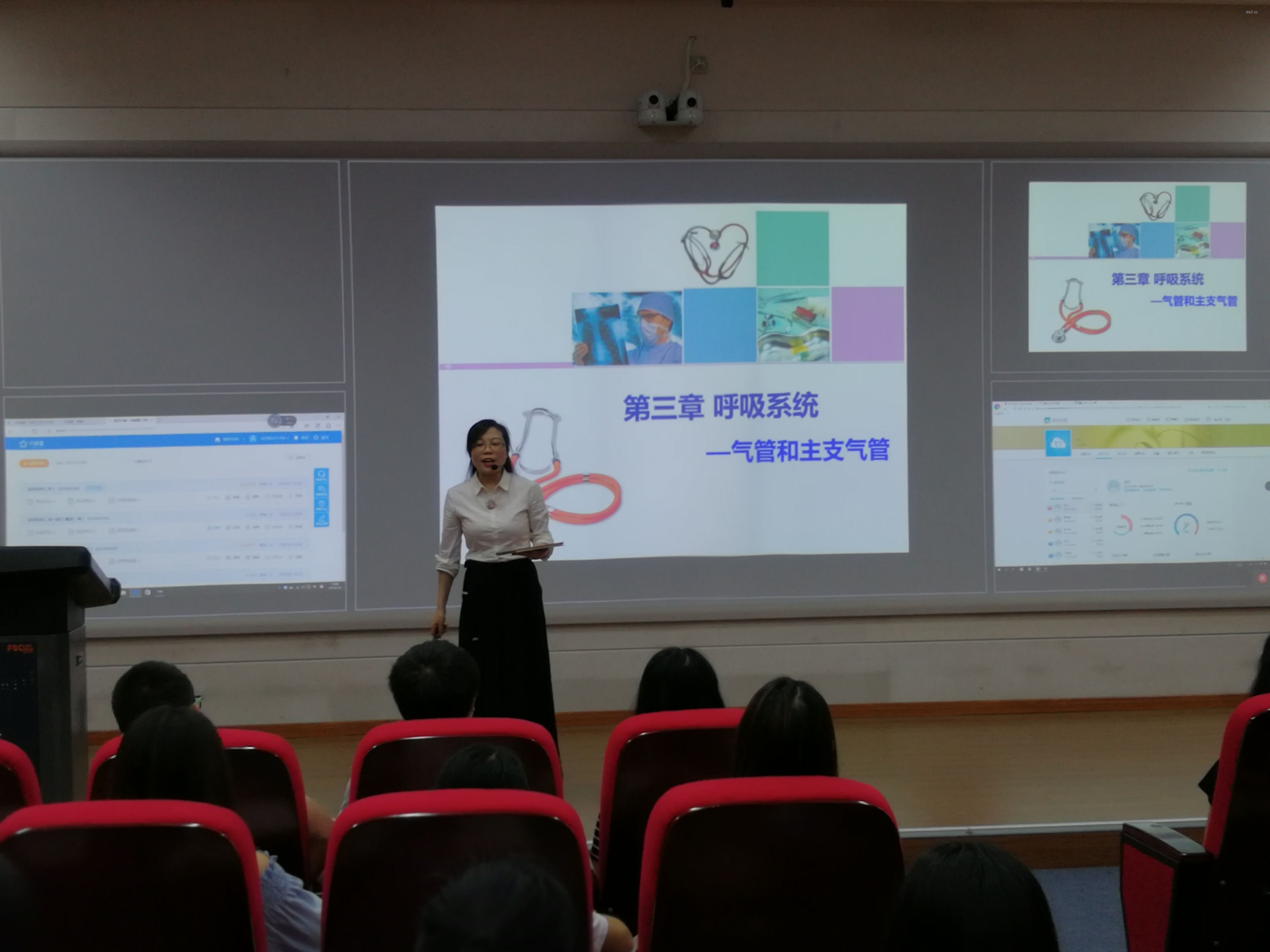 2018年7月18日上午9点,基础医学部在名山经开区多功能教室进行了一场信息化教学的公开课。公开课由李明蓉老师主讲,题目是“气管与主支气管”。