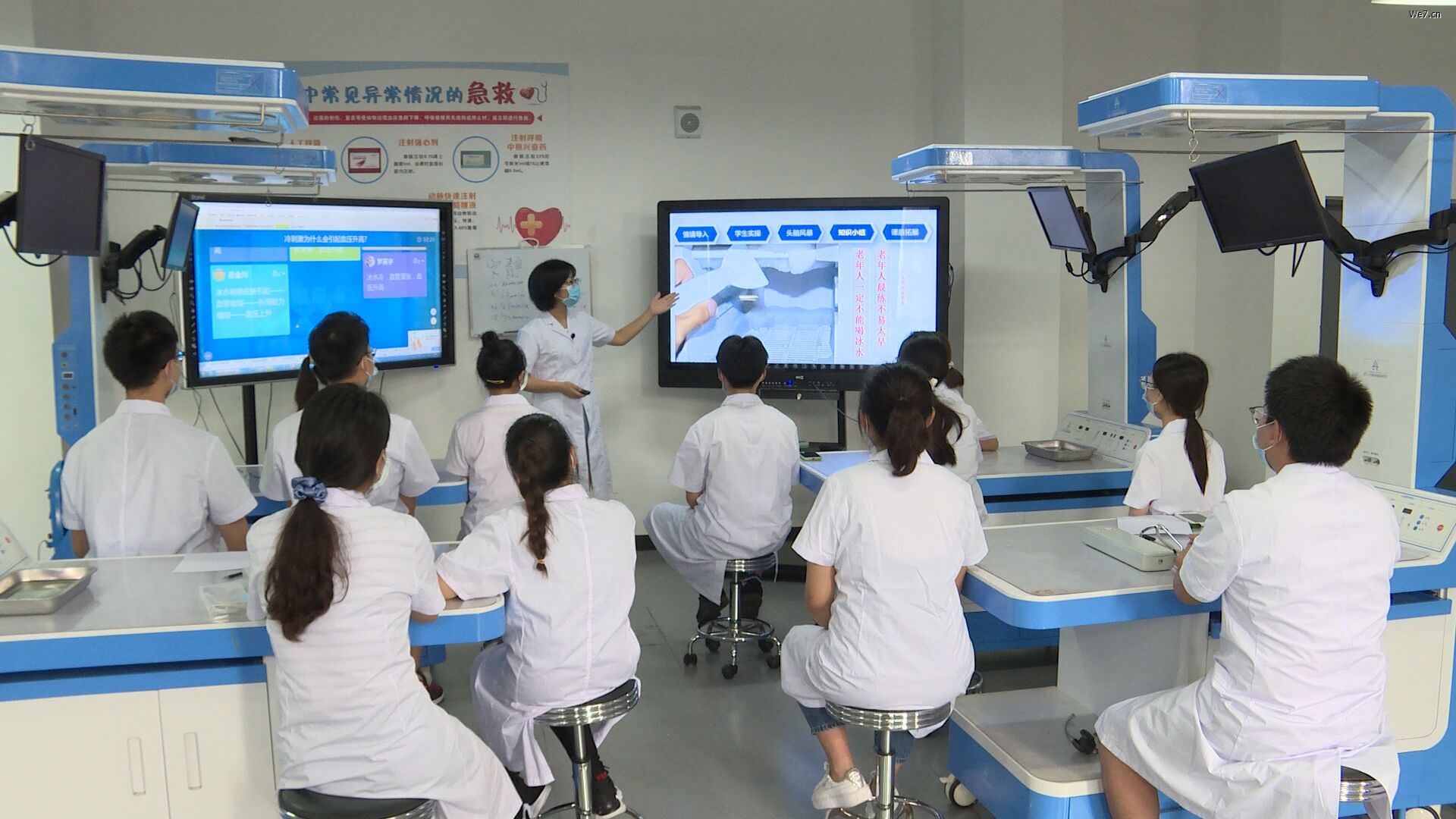 比赛除了需要提交相关的教学设计外,还有一项重要的要求就是录制教学视频。录制视频需要准备的东西有很多,教学过程设计,场地布置,员工培训,仪器设备调试以及专业的拍摄人员等等。时间有限, 经过紧张的筹备工作,于7月4日辗转三个场地进行视频拍摄。首先在青年路机能实验室,然后转战生命科学管,最后又到经开区机能实验室,王贞、张可为、秦从军、王颖几位老师分别录制了教学视频。